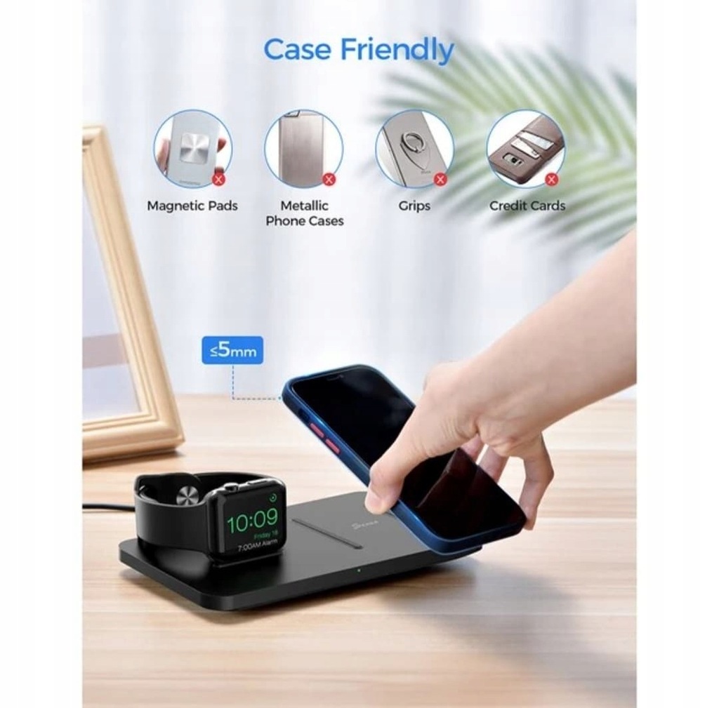 【Dom ładowania dla iPhone/AirPods Pro/AirPods 2 + seria iwatch 】 Bezprzewodowa ładowarka Seneo 2 w 1 działa jako znakomita kombinacja bezprzewodowej szybkiej ładowarki do iPhone 12/12 Pro/iPhone 11/11 Pro/11 Pro Max/iPhone XR/XS/XS Max/X/8/8Plus lub AirPods 2, airPods Pro i iWatch (dostępny tryb nocny) stojak do ładowania kompatybilny iWatch SE, seria 6/5/4/3/2. (Kabel ładujący Iwatch nie jest dołączony; Bezprzewodowe etui z funkcją ładowania AirPods jest wymagane, ale nie dołączone). Wykwintne prezenty dla fanów iphone'a 【Intimate lampki nocne szafka nocna charger】 W trybie nocnym z iwatch jest dostępny z zegarek podstawka ładująca do oglądania czas, data, i na alarm w możesz się z tobą skontaktować lub wiedzieć, jak je dotrzeć wygodnie. Co więcej, dodatkowe pomieszczenie na kable w dolnej części utrzymuje porządek, przechowując cały kabel 【Case friendly】 Wewnętrzna cewka indukcyjna o wysokiej jakości umożliwia ładowanie telefonu przez dowolną obudowę obronną (w granicach 0.2in/5mm). Nie trzeba zdejmować obudowy telefonu podczas ładowania. (Klucze, przedmioty magnetyczne, metalowe przedmioty i karta kredytowa powinny zostać usunięte z obudowy przed ładowaniem) 【Certyfikowany bezpieczny bezprzewodowy pad】 Zatwierdzony przez CE, FCC ID, zapewnia wiele ochrony jako ochrona napięcia, zabezpieczenie przed zwarciem i wiele innych. Maty silikonowe utrzymują ładowarkę stabilnie i zapobiegają zsuwaniu się. Iphone'a 11/XR/XS/XS Max/X/8/8Plus/iWatch z 5W oryginalny adapter, ale iPhone potrzebuje 7.5W, aby osiągnąć szybkie ładowanie, a iWatch potrzebuje 2W, aby uzyskać pracę, więc potrzebuje co najmniej 10W adaptera do jednoczesnego zasilania dwóch urządzeń. Wysoce sugerowany jest adapter QC 3.0 z wyjściem 18W