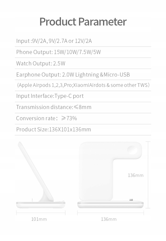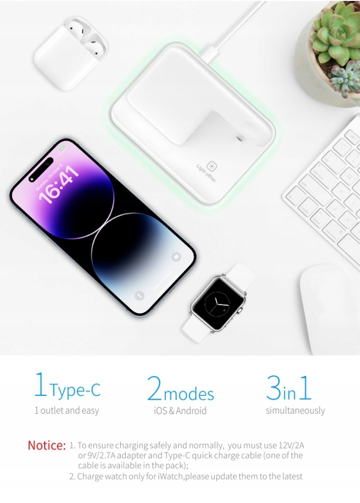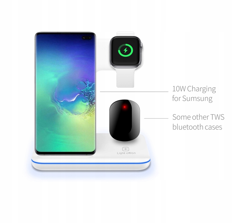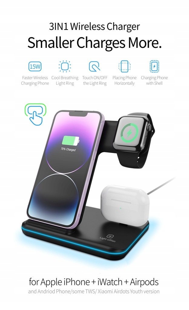 【Uniwersalna kompatybilność】: bezprzewodowa ładowarka jest szeroko kompatybilna z wieloma telefonami komórkowymi i zegarkami. Kompatybilna z iPhone 14/13 Pro/13/13 Pro/12/12 Pro/11/11 Pro/SE/X/XS/XR/Xs Max/8/8 Plus, Samsung S22/S22+/S22 Ultra/S21/S21+/S21 Ultra/S20. /S20+/S20/S10/S10+/S10e/S9/S9+/S8/S8+/S7/S7e, Note10/10+/9+/9+/8/8+, Huawei P40 P30 Pro/Mate 20 Pro/Mate 20 RS, Google Pixel 3/3+/4/4+, Xiaomi10/10 Pro/9/9Pro/Mix 3 i wszystkie urządzenia obsługujące Qi. Kompatybilny z Apple Watch 7/6/5/4/SE/3/2, AirPods Pro/3/2/1.