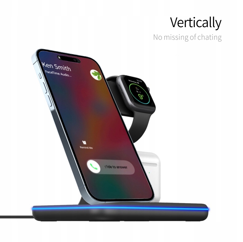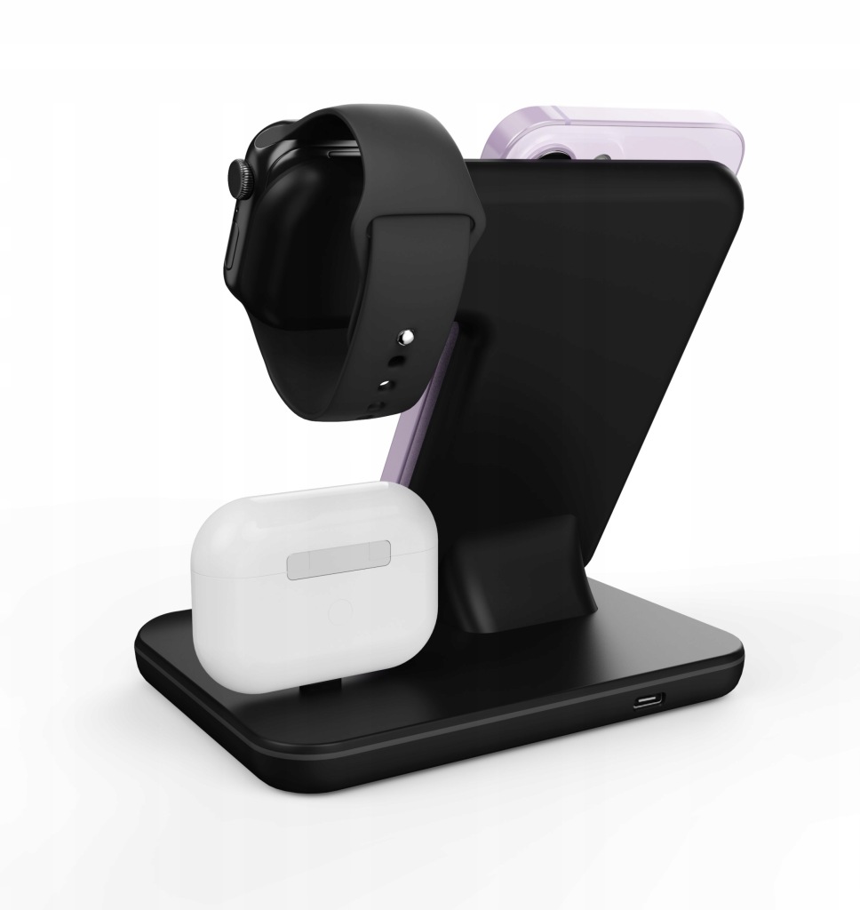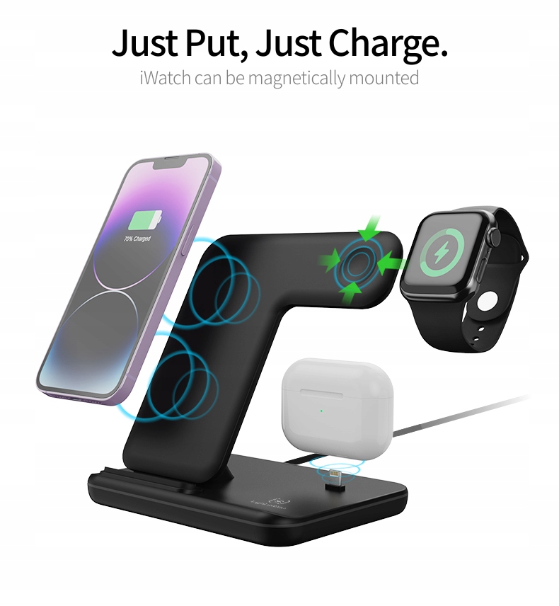 【Stacja ładowania bezprzewodowego 3 w 1】 Stacja ładująca do Apple Watch i iPhone'a ładuje jednocześnie iPhone'a, iWatch i AirPods za pomocą jednego adaptera QC 3.0 o mocy 18 W (w zestawie). Ładuj wszystkie urządzenia w jednym miejscu i zwolnij inne ładowarki do innych rzeczy. Koniec z plątaniną kabli na stoliku nocnym. Wydajność stacji ładującej wynosi do 10 W dla telefonów, 5 W dla AirPods 2 (etui bezprzewodowe) / Pro i 3 W dla iWatch.