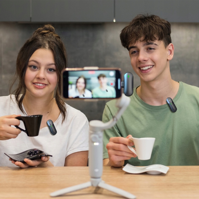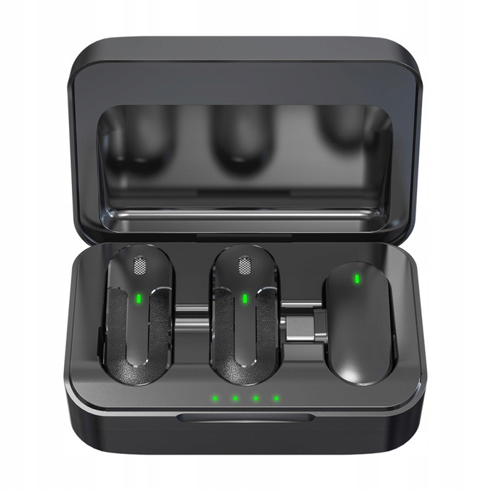 W kompaktowym designie mikrofonów znajdziesz praktyczne klipsy, które ułatwiają ich mocowanie do odzieży. Zestaw wyposażony jest w etui ładujące, które nie tylko ochroni mikrofony, ale także wydłuży czas ich pracy nawet do 24 godzin dzięki możliwości czterokrotnego doładowania.