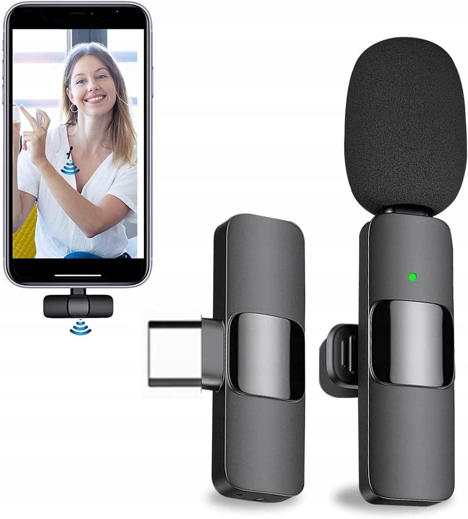 Specification: Frequency: 2.4GHz Input voltage: DC4.8-5.4V Charging port: for Lightning/for Type-C Battery capacity: 80mAh Transmission Distance: 8 m barrier, 20 m barrier free Microphone size: 62*23 * 28mm Microphone weight: 7g Receiver size: 45*27 * 7mm Receiver weight: 4g