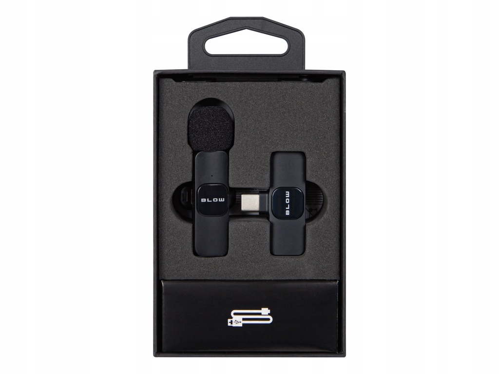 - W zestawie: mikrofon krawatowy, odbiornik, kabel USB-A/USB-C
