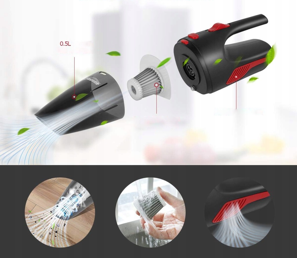 Wbudowany akumulator litowy o wysokiej pojemności 2200 mAh odkurzacz samochodowy jest bezprzewodowy, lekki i przenośny, który może pracować nieprzerwanie do 20 minut po pełnym naładowaniu. Użyj go w garażu, kuchni, sypialni i samochodzie.
