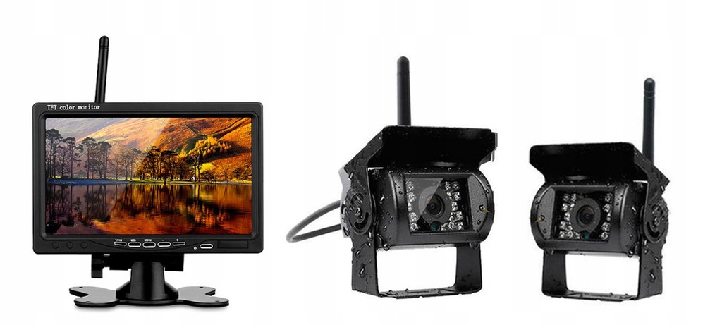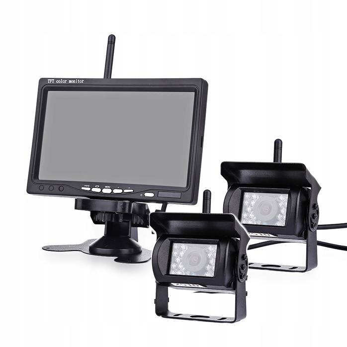 PROFESJONALNY BEZPRZEWODOWY ZESTAW COFANIA MONITOR 2X KAMERA COFANIA 12V/24V