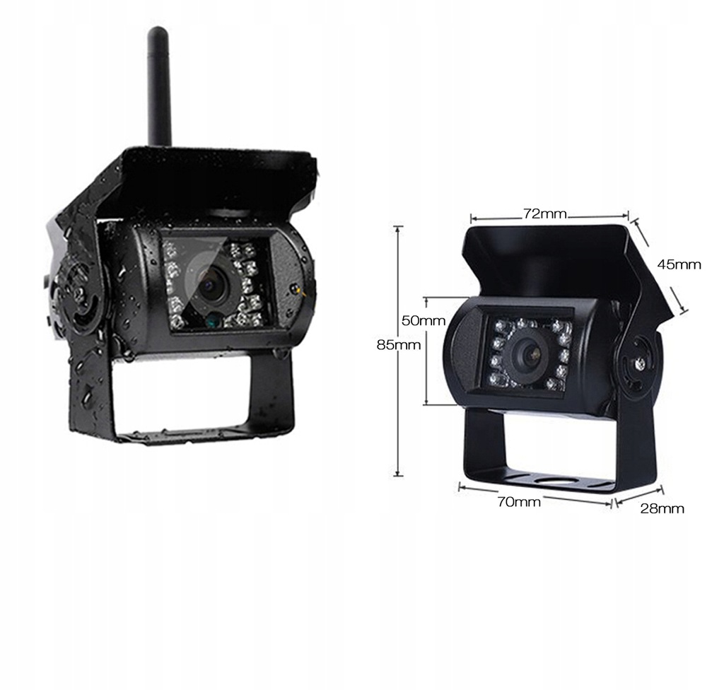 Dzięki wbudowanym diodom na podczerwień kamera sprawdzi się w słabych warunkach oświetleniowych.Diody IR doświetlą obszar za kamerą do 20m - manewr cofania / parkowania będzie znacznie ułatwiony. Wbudowane nadajniki Video 2,4Ghz gwarantują przesyłanie bezprzewodowo obrazu do monitora bez zakłóceń na odległość do 50m.