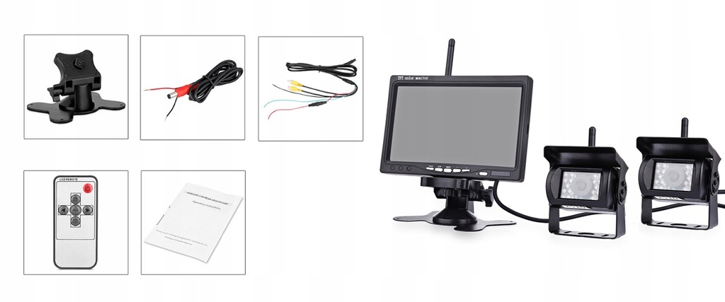 Kamera Cofania 2x Bezprzewodowa Bezprzewodowy Monitor LCD 7” 12V/24V BUS