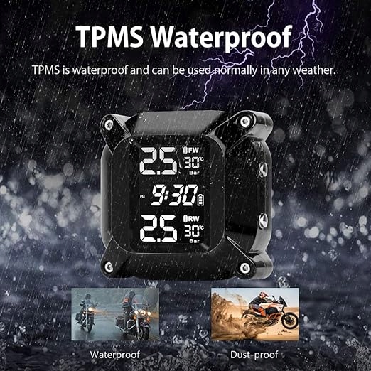 - Monitorowanie w czasie rzeczywistym i wysoka dokładność: system monitorowania ciśnienia w oponach motocyklowych TPMS monitorowanie w czasie rzeczywistym temperatury i ciśnienia z wysoką dokładnością i silnym wnioskowaniem. Specjalnie zaprojektowany do stosowania w oponach motocyklowych z 2 czujnikami. Monitorowanie w czasie rzeczywistym ciśnienia w oponach, temperatury i czasu. W razie potrzeby można przełączać dwie jednostki ciśnienia „PSI, BAR” i dwie jednostki temperatury „℃, ℉”.