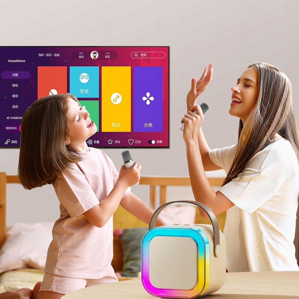 ⭐Zestaw Do Karaoke Głośnik BT Bezprzewodowy 2x mikrofon RGB DLA DZIECI USB microSD AUX MP3 5W⭐