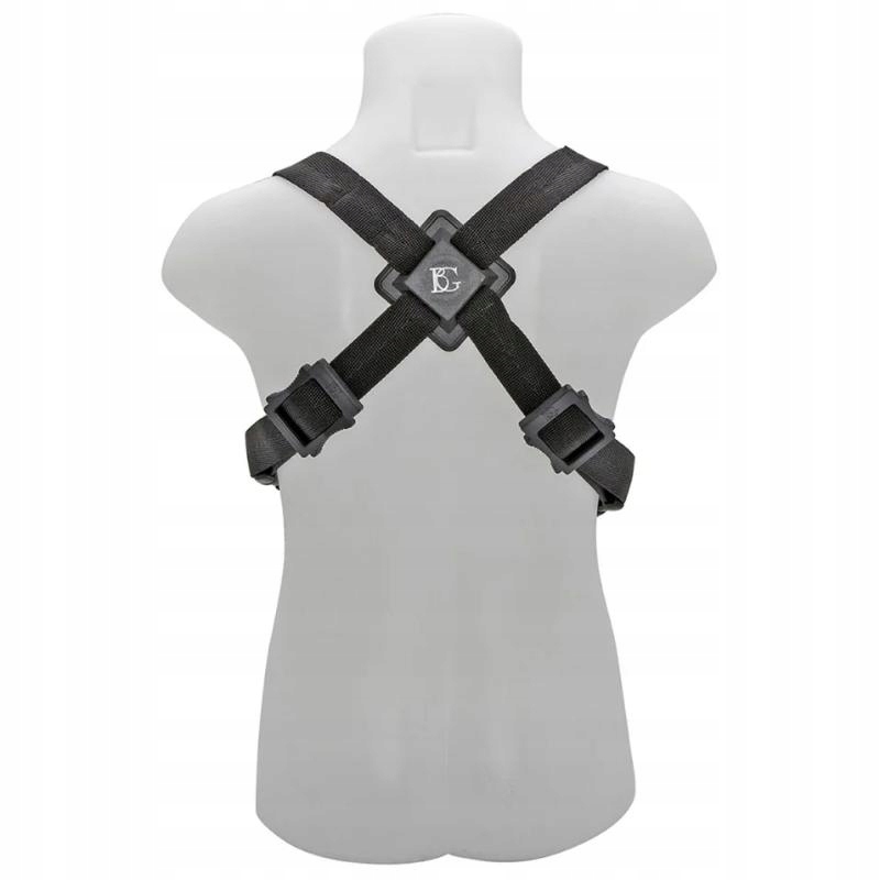 Szelki BG S42SH rozkładają ciężar instrumentu równomiernie na górne partie ciała.