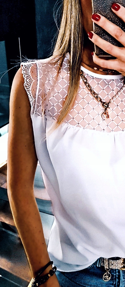 B00134WH SZACHOWNICA UNI 1 | BIAŁA BLUZKA ELEGANCKA DO GARNITURU KORONKA UNI