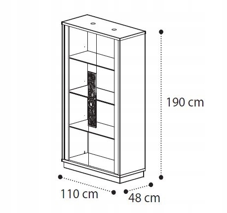 Wymiary tej funkcjonalnej witryny to: - Wysokość: 190 cm - Szerokość: 48 cm - Długość: 110 cm