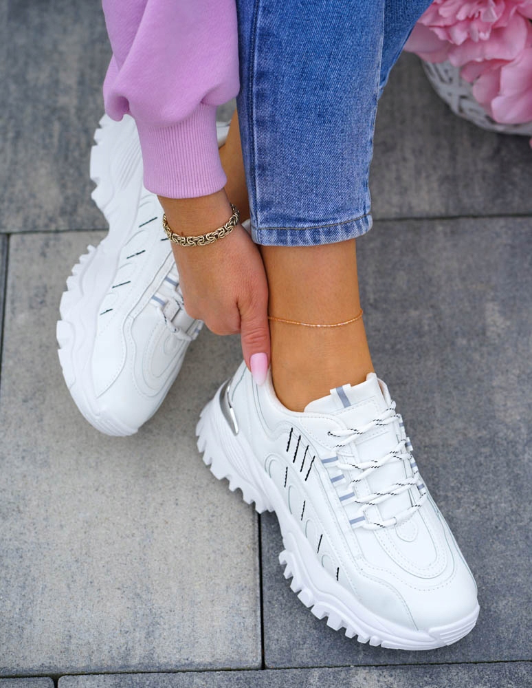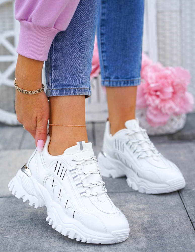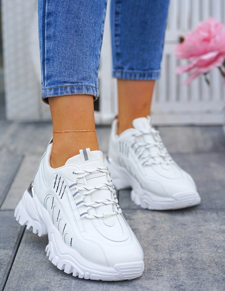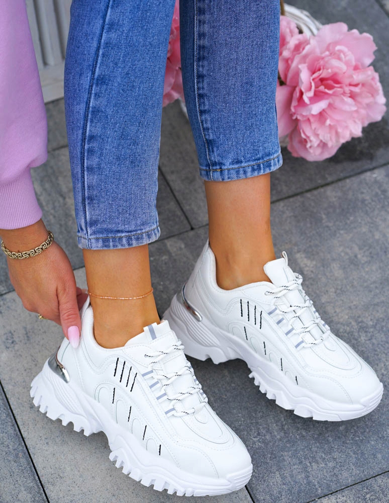 - ❤Modne adidasy damskie na grubej podeszwie❤Ultra kobiece lekkie buty sportowe ze skóry❤Adidasy dostępne są w białym kolorze z subtelnymi czarnymi wstawkami❤Gruba podeszwa-platforma zapewni komfort użytkowania❤Buty idealne sprawdzą się na siłownię, fitness do biegania jak również na specjalne okazje❤Wysyłka 24hCECHY PRODUKTU: