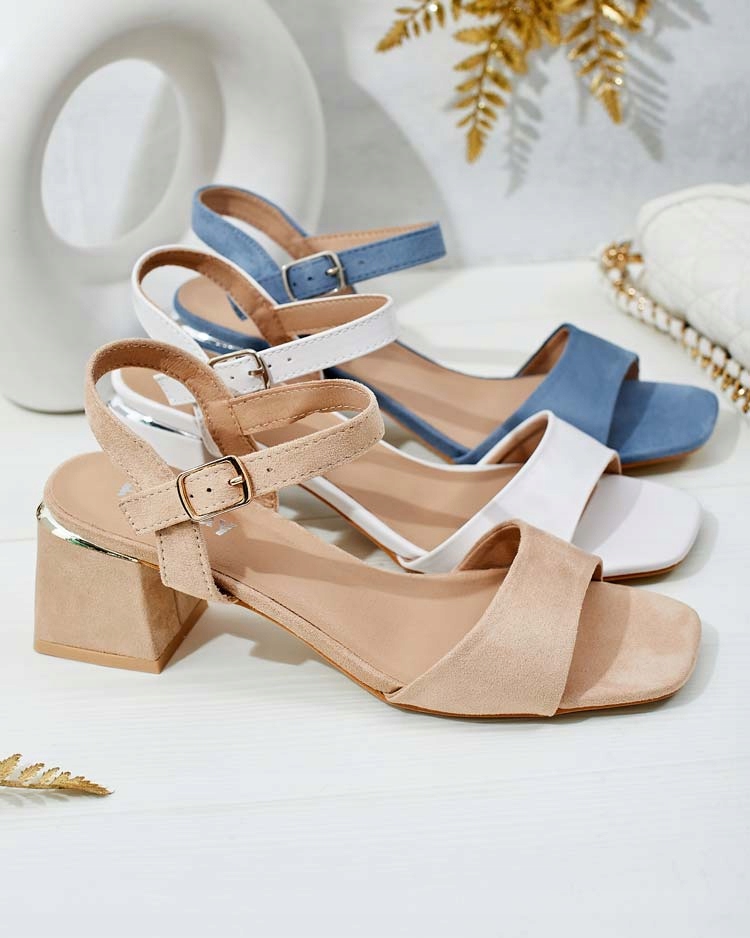 Sandałki pokryte tkaniną na subtelnym słupku z kryształkami, zapinane na sprzączkę. Eko skórzana wkładka. Mieszanka stylu i wygody. Solidny obcas nadaje pewności kroku. Doskonałe na każdą okazję!