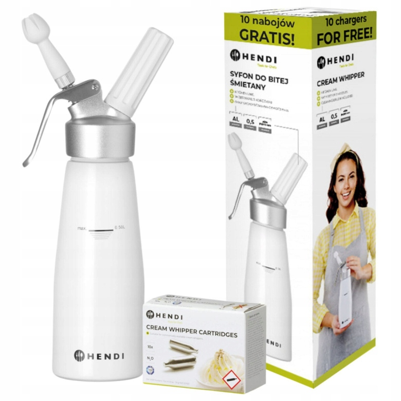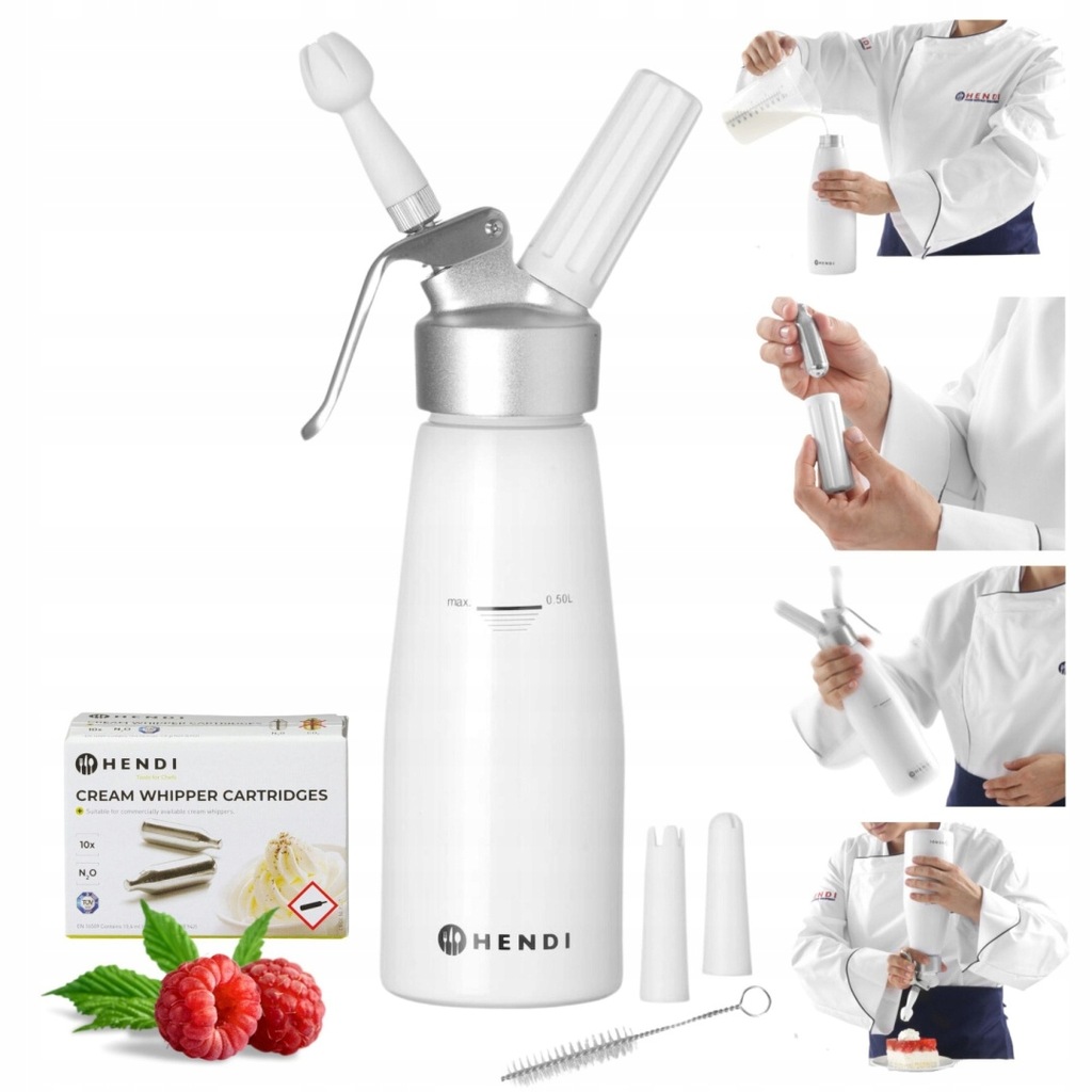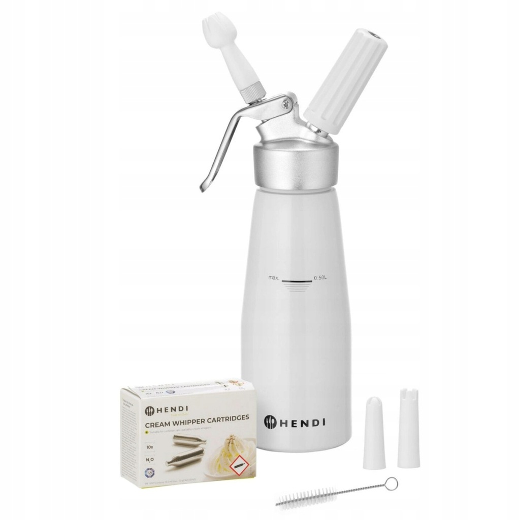 Biały Syfon do Bitej Śmietany Hendi 0,5l 10 Naboi w Zestawie Domowy - Odkryj Wszechstronność w Tworzeniu Deserów