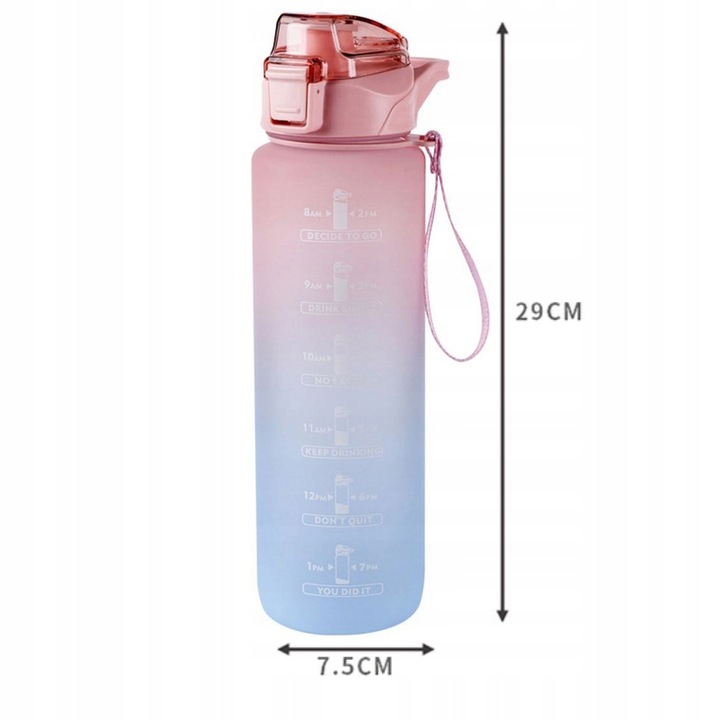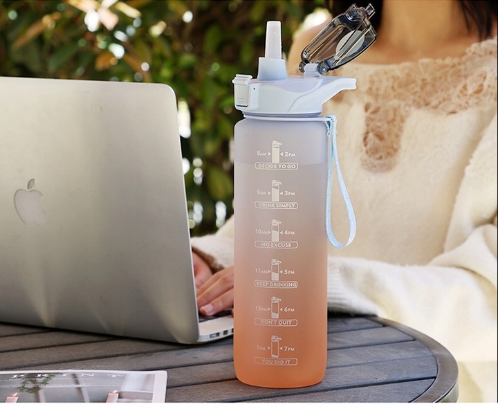 Dzięki unikatowemu wskaźnikowi cytatowi i wskaźnikowi czasu wykorzystanego na butelce, ta butelka wody doskonale nadaje się do pomiaru dziennego spożycia wody, przypominając o pozostaniu nawodnionym i wypiciu ilości wody przez cały dzień.
