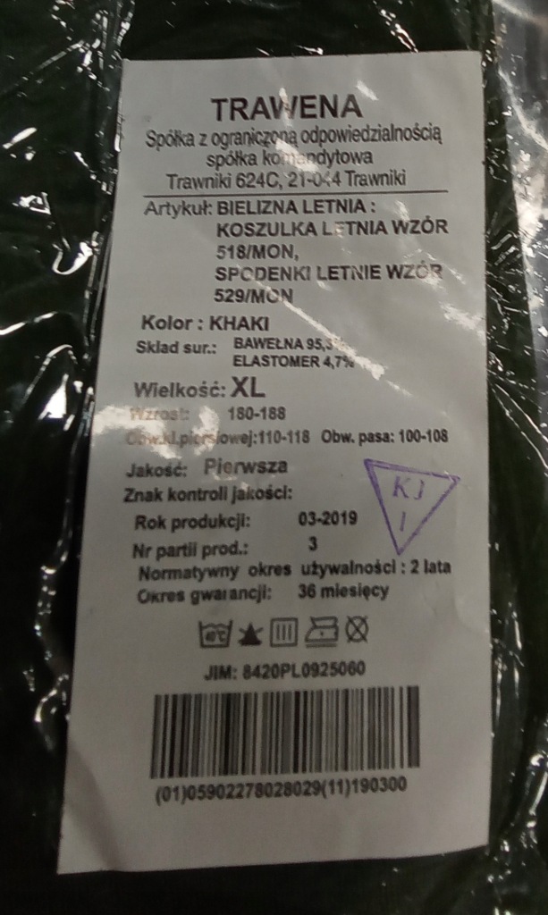 Koszulka: obwód klatki piersiowej 110-118 cm.