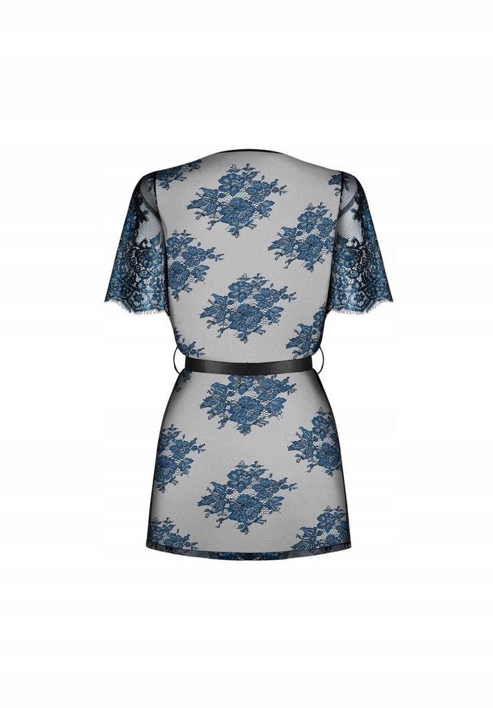 Marzy Ci się nowy szlafroczek pięknie komponujący się z Twoją ulubioną bielizną? Z czarującego połączenia zjawiskowej czerni i uroczego koloru indygo stworzyliśmy specjalnie dla Ciebie wyjątkowo cudny model ) Elegancki koronka, klasyczny krój i prześwitujący materiał. Przedstawiamy Ci przecudowną Yassmyne!