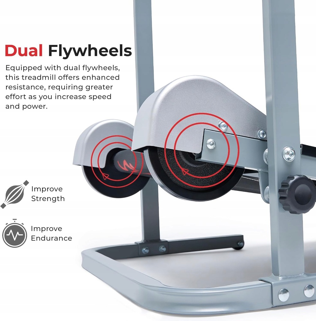 - NIEELEKTRYCZNA: Ta bieżnia nie wymaga gniazdka elektrycznego, co pozwala zaoszczędzić miejsce i ułatwia konserwację. Posiada funkcję składania oraz kółka transportowe, które ułatwiają mobilność i przechowywanie.