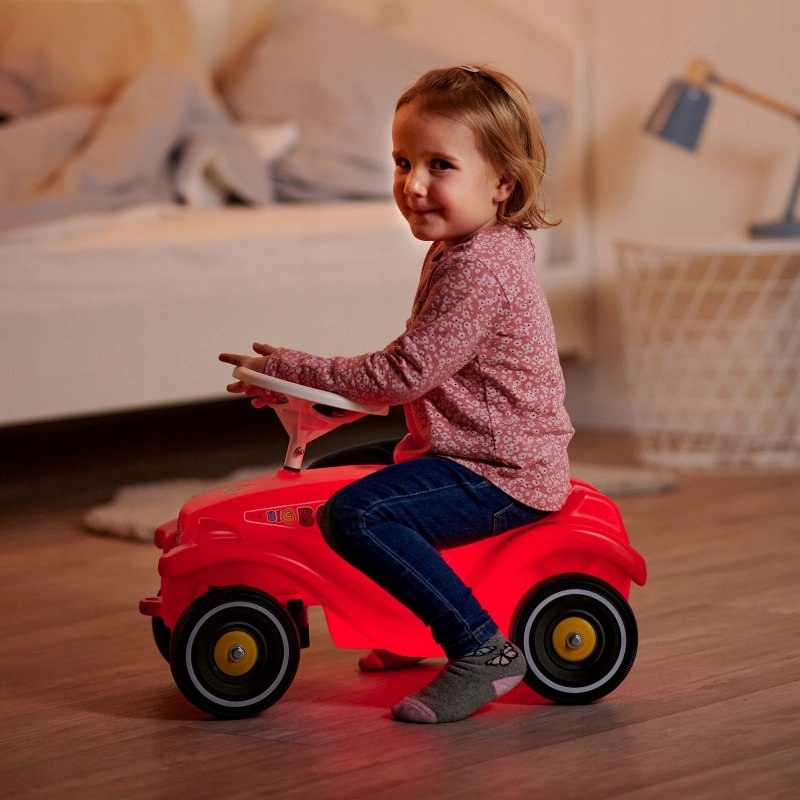 Klasyka zdefiniowana na nowo! Topowy produkt renomowanej marki BIG. Ergonomiczny, solidny, efektowny i świecący. Jeździk Bobby Car z dźwiękiem świeci w ciemności. Samochodzik jest w unikatowym czerwonym kolorze w nowoczesnym stylu. Wyposażony jest w kierownicę z klaksonem, co daje dziecku większe wrażenia podczas zabawy. Jeździk posiada wyprofilowane siedzenie, pozwalające na zabawę w dwóch pozycjach - siedząc lub klęcząc.