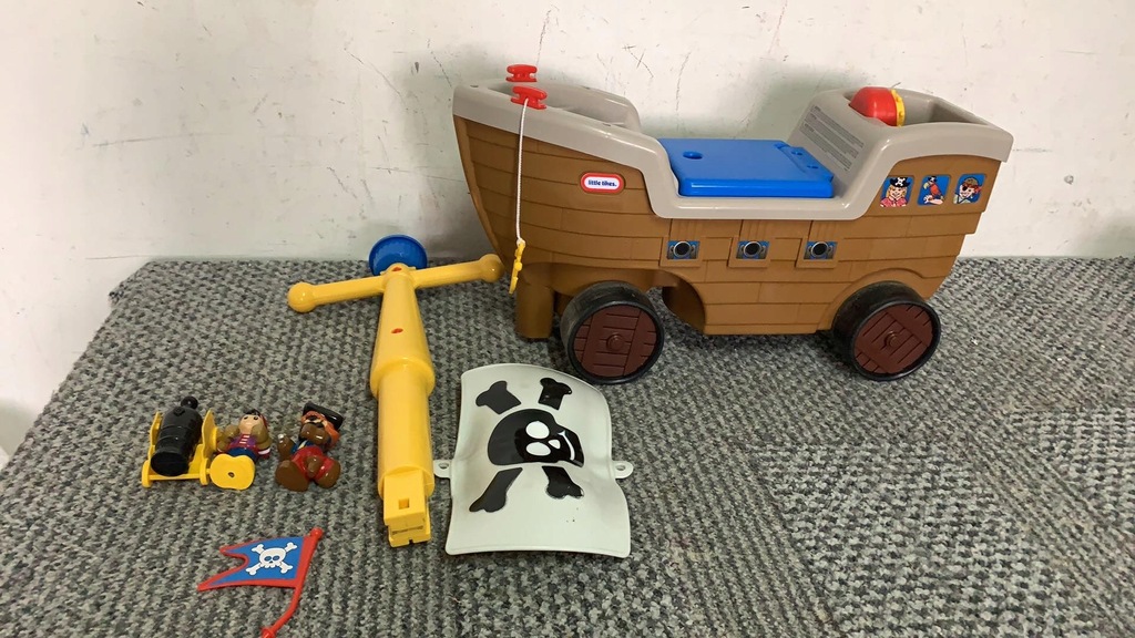 Zestaw piracki i piracka zabawka do jazdy w jednym. Twój maluch przeżyje godziny aktywnych, pomysłowych przygód z zabawką Play 'n Scoot Pirate Ship. Siedzenie otwiera się, odsłaniając uchwyt zabawki, a maszt obraca się, aby kierować kołami.