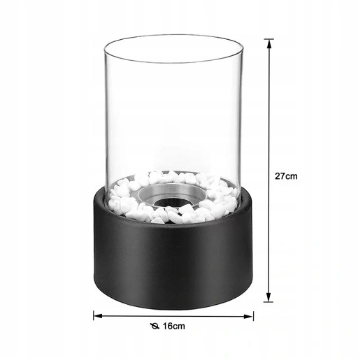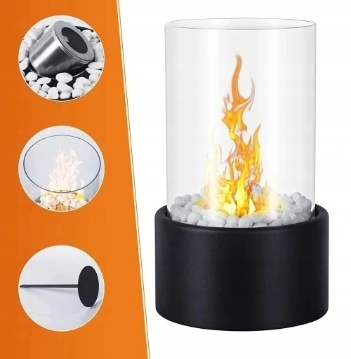 Klasyczny i elegancki design: kominek stołowy jest zaprojektowany z nowoczesnego czarnego metalu. Za przezroczystą i wyjmowaną szklaną rurą odporną na wysoką temperaturę można obserwować taniec płomienia 360°, co jest modne i ciekawe.