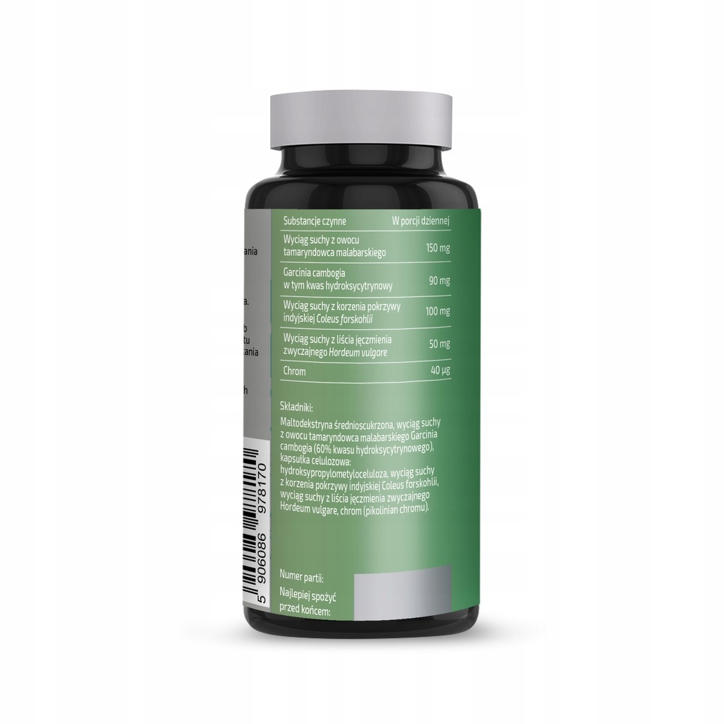 - description_extra1: |maltodekstryna średnioscukrzona, wyciąg suchy z owocu tamaryndowca malabarskiego Garcinia cambogia (60% kwasu hydroksycytrynowego), kapsułka celulozowa: hydroksypropylometyloceluloza, wyciąg suchy z korzenia pokrzywy indyjskiej Coleus forskohlii, wyciąg suchy z liścia jęczmienia zwyczajnego Hordeum vulgare, chrom (pikolinian chromu).|Sposób użyciaZalecana porcja do spożycia w ciągu dnia niezbędna do uzyskania korzystnego działania: 1 kapsułka (opakowanie zawiera 60 porcji). PrzeciwwskazaniaPreparat nie jest przeznaczony dla dzieci, kobiet w ciąży i matek karmiących. Nie stosować w przypadku nadwrażliwości na którykolwiek składnik preparatu. Nie należy przekraczać zalecanej porcji do spożycia w ciągu dnia. Suplementy diety nie mogą być stosowane jako substytut (zamiennik) zróżnicowanej diety. PrzechowywaniePrzechowywać w suchym i chłodnym miejscu, w sposób niedostępny dla małych dzieci.|Podmiot odpowiedzialny: BioOrganic Sp. z o.o. ul. Myśliborska 53, 03-185 Warszawa NIP: 1182271595