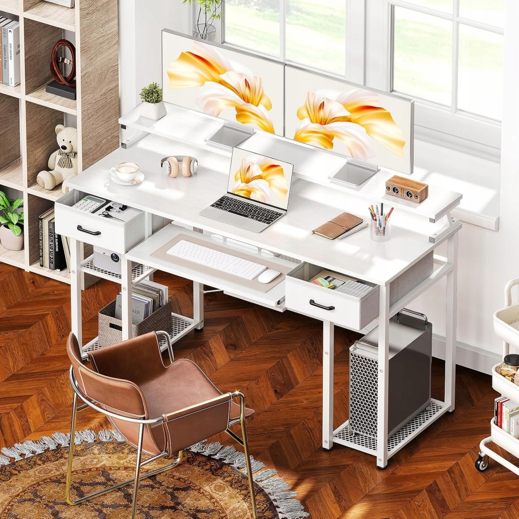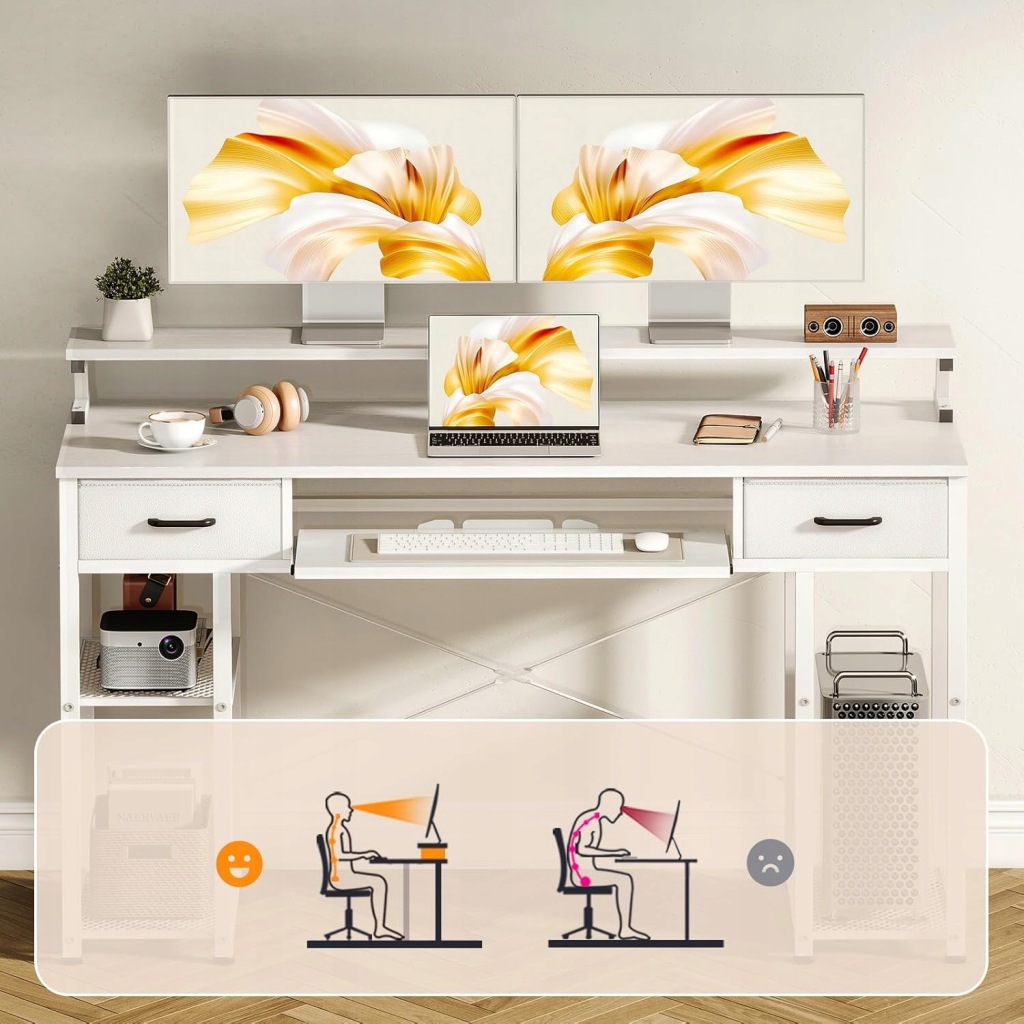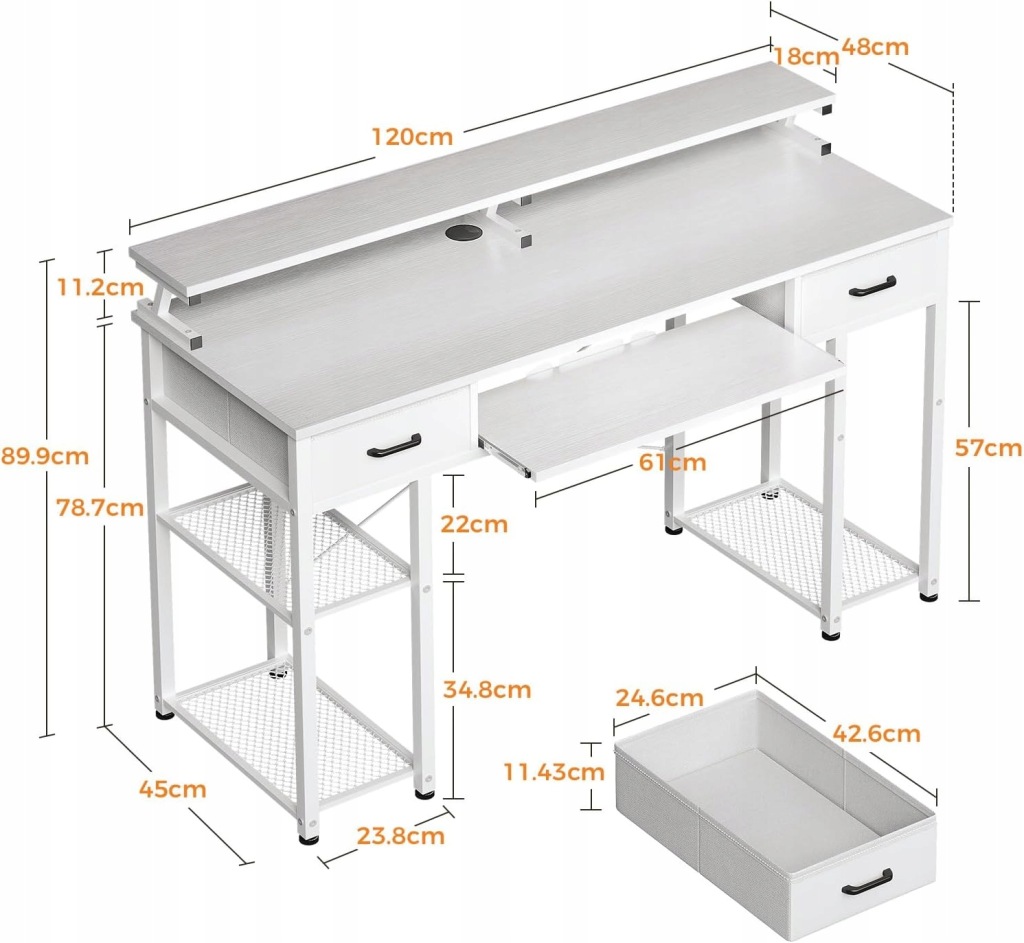 Biurko z podstawą pod monitor: biurko ODK ze stojakiem na monitor zapewnia wygodny kąt widzenia, aby uniknąć bólu karku i pleców. Długa konstrukcja pomieści 2 monitory i inne akcesoria. Ponadto przestrzeń pod stojakiem na monitor zwiększa przestrzeń do przechowywania, która idealnie nadaje się na książki, długopisy i inne przedmioty.