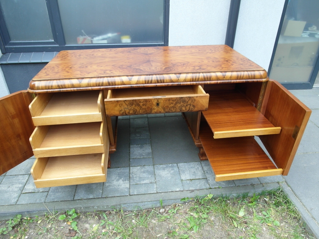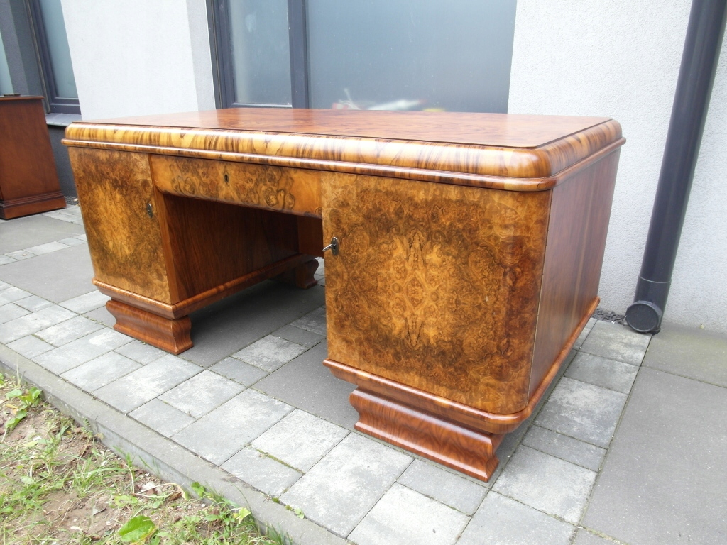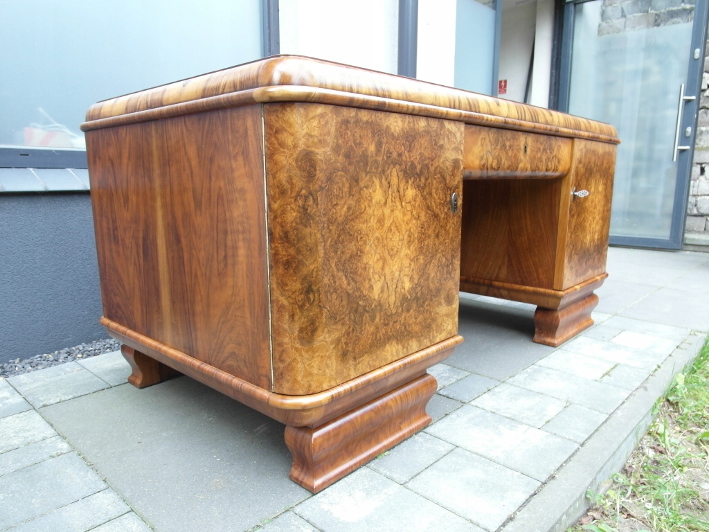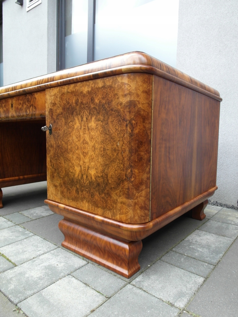 Opis: biurko przepiekne , w calości fornirowane z kazdej strony prezentuje sie niesamowicie , jest duze , ciężkie i stabilne zarazem , idealne do dużego gabinetu