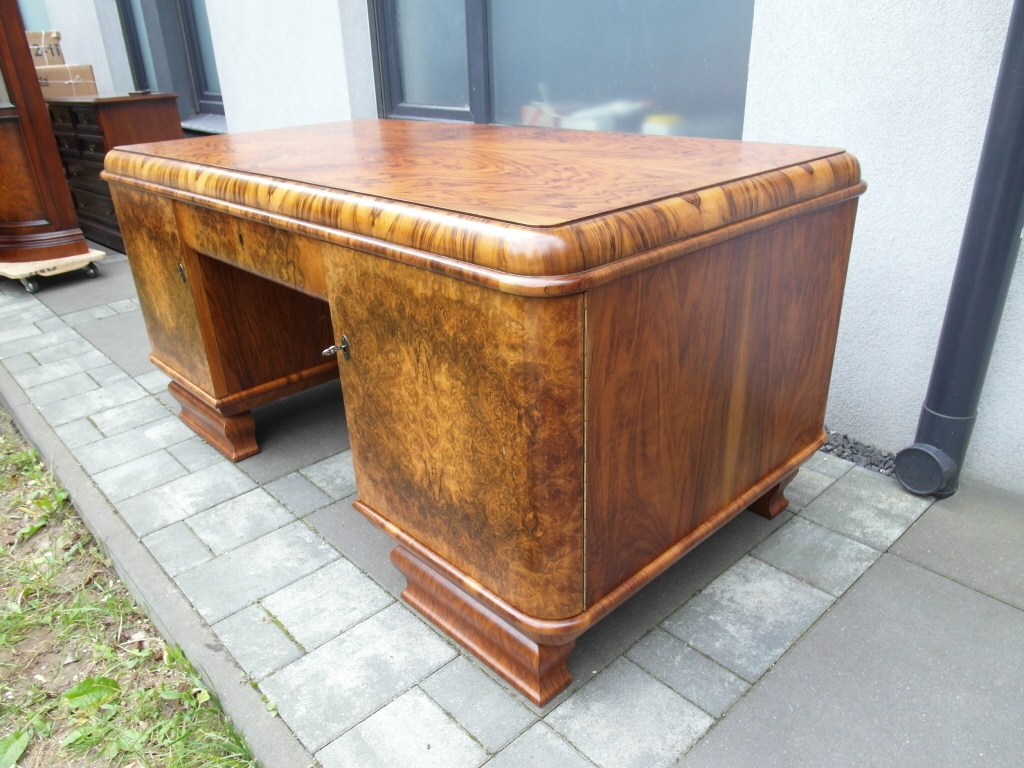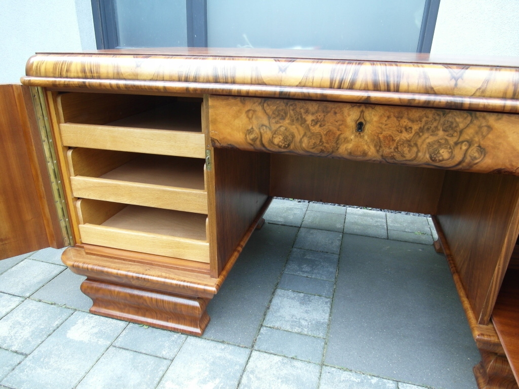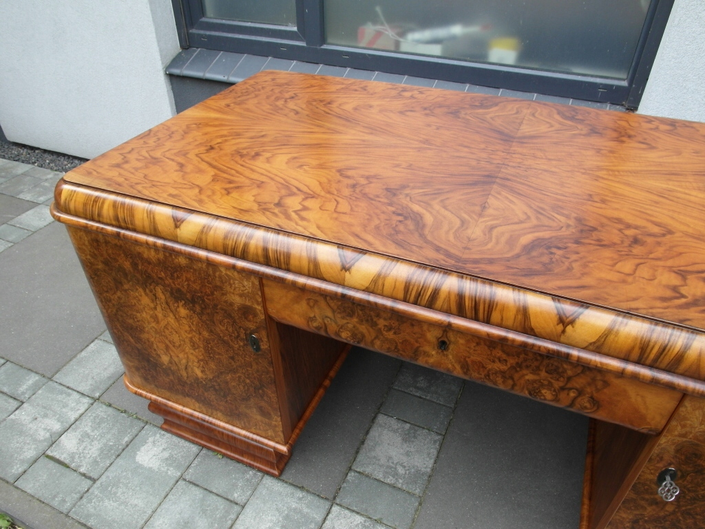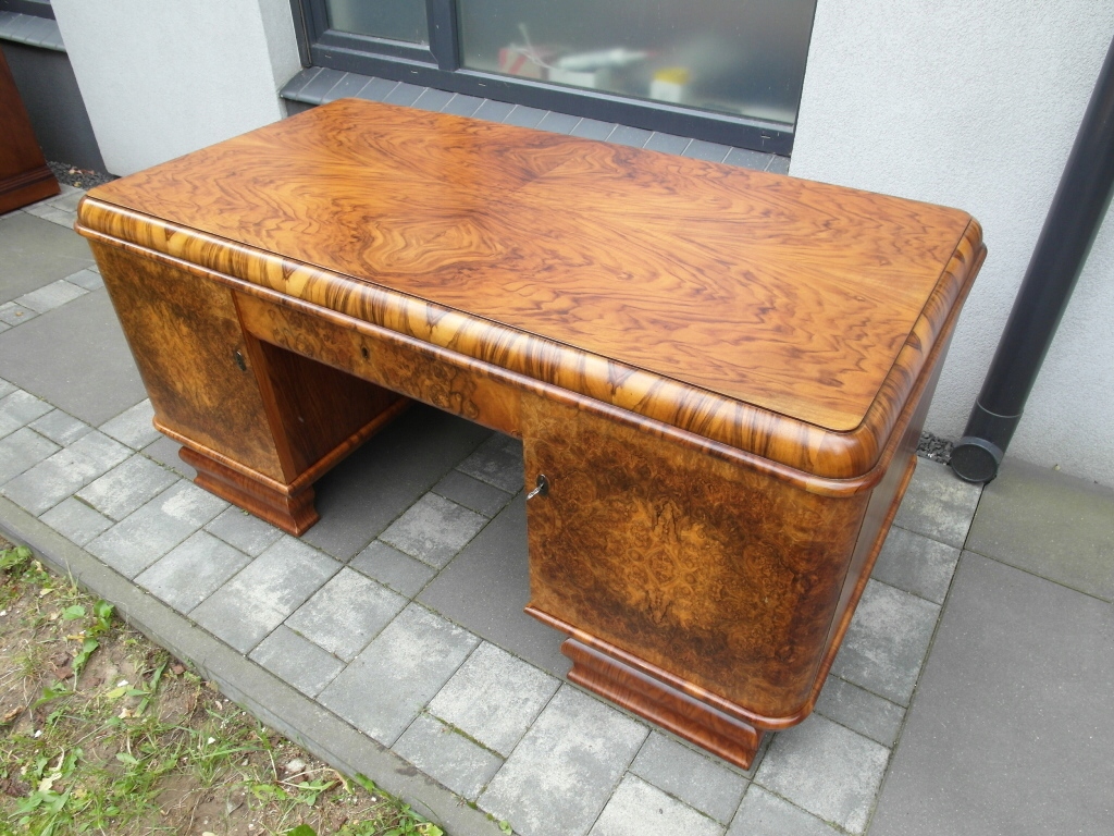 Opis: biurko przepiekne , w calości fornirowane z kazdej strony prezentuje sie niesamowicie , jest duze , ciężkie i stabilne zarazem , idealne do dużego gabinetu