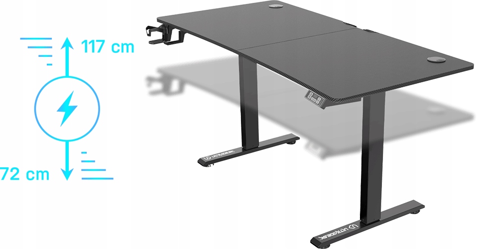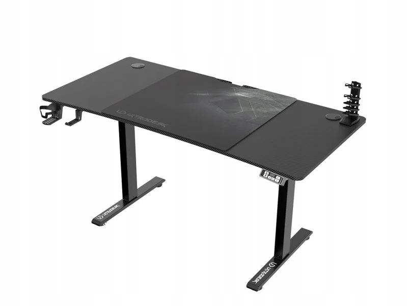 ULTRADESK Biurko dla gracza LEVEL V2 BLACK, 140x68cm, 72-117cm, elektrycznie regulowany