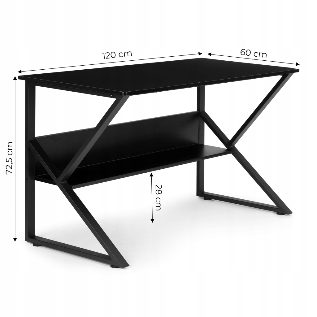 Biurko komputerowe 120 cm czarne z półką gamingowe szkolne ModernHome
