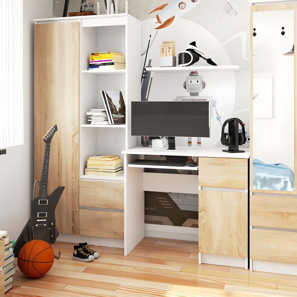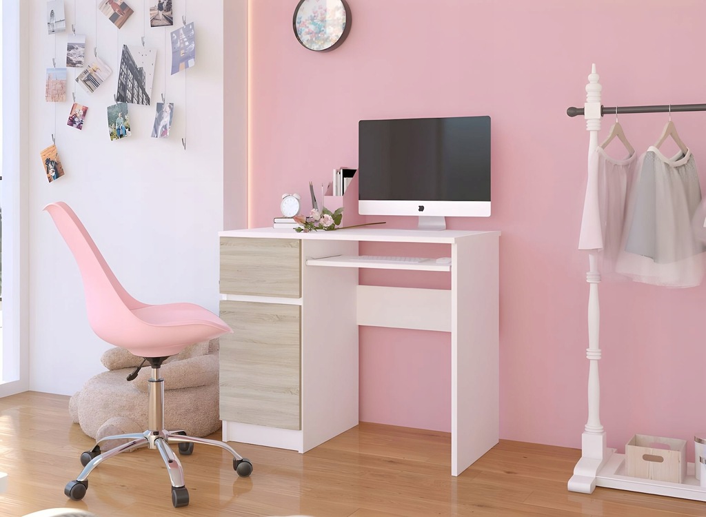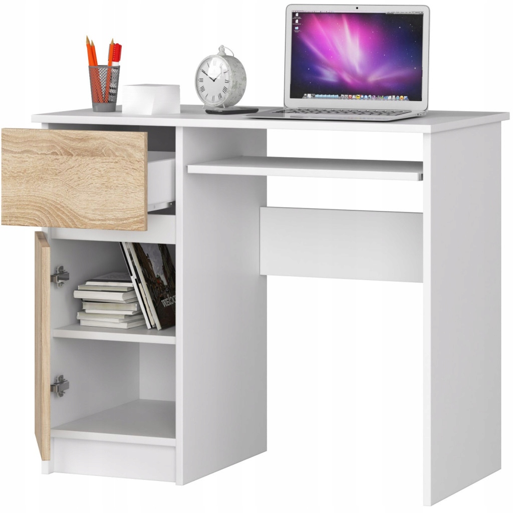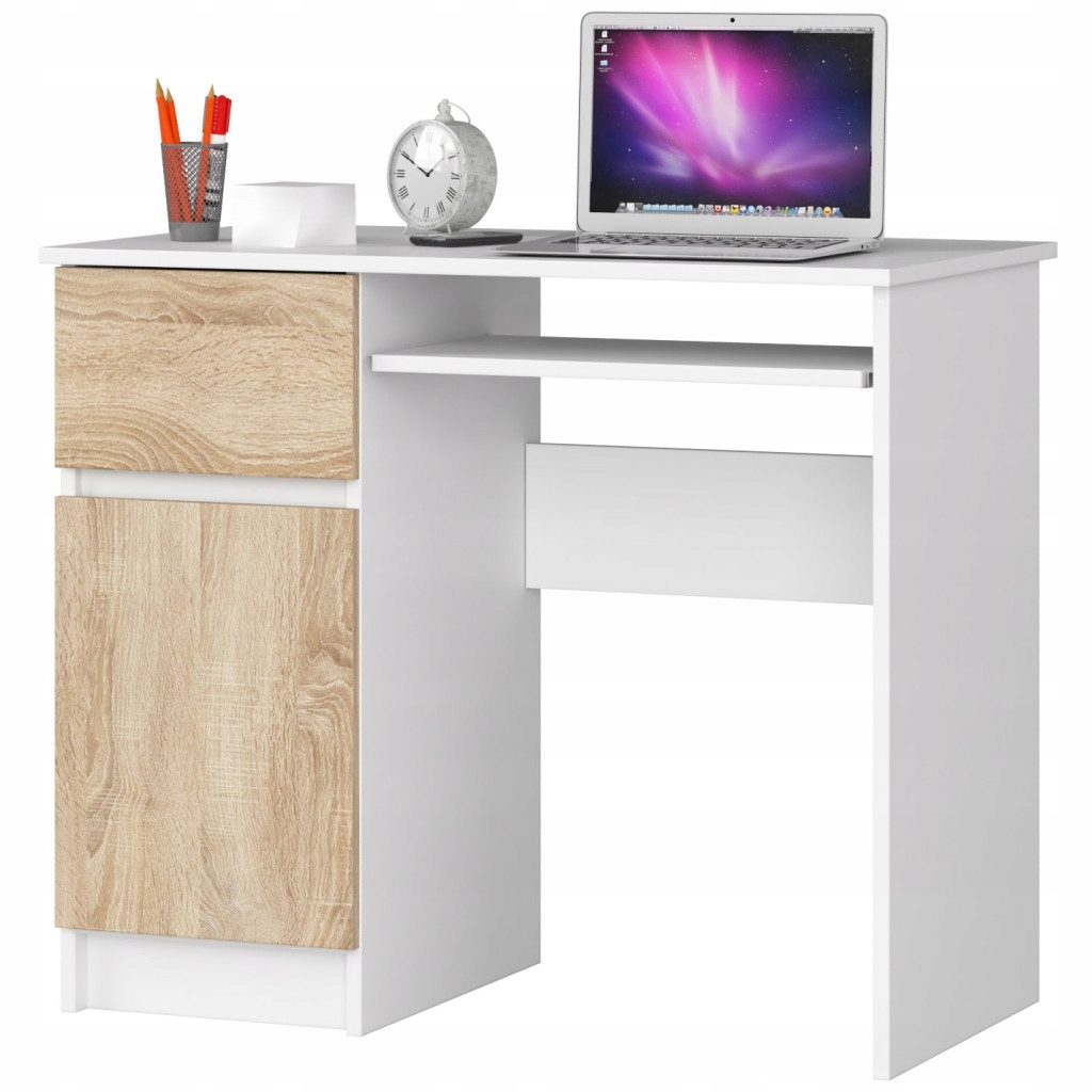 BIURKO KOMPUTEROWE A6 LEWOSTRONNE - BIAŁE / DĄB SONOMA