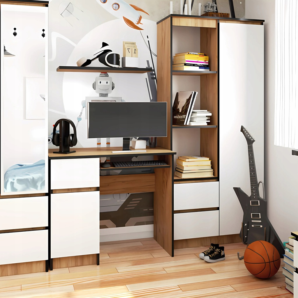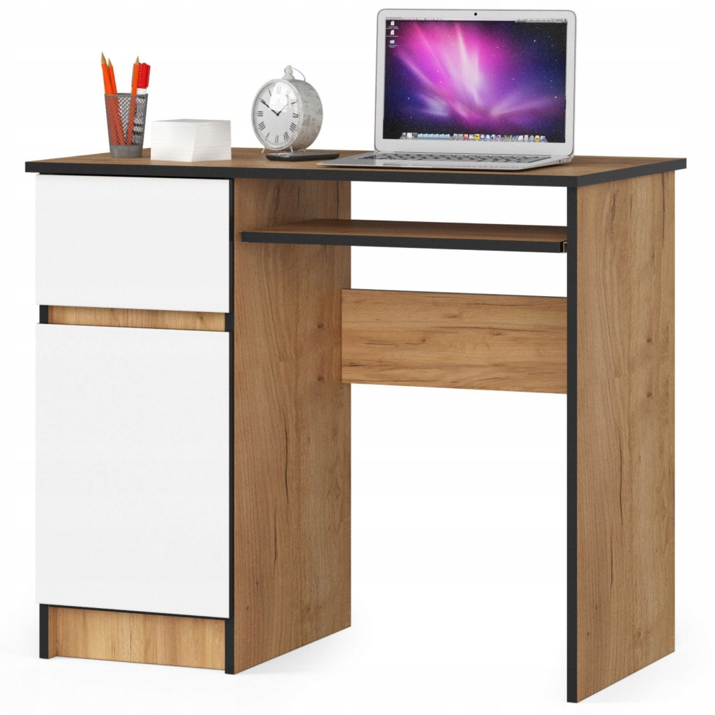 BIURKO KOMPUTEROWE A6 LEWOSTRONNE - DĄB CRAFT / BIAŁE