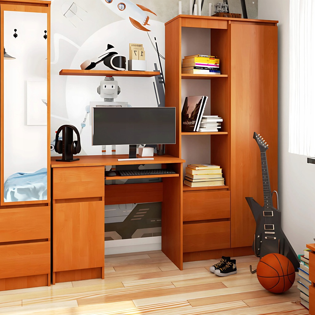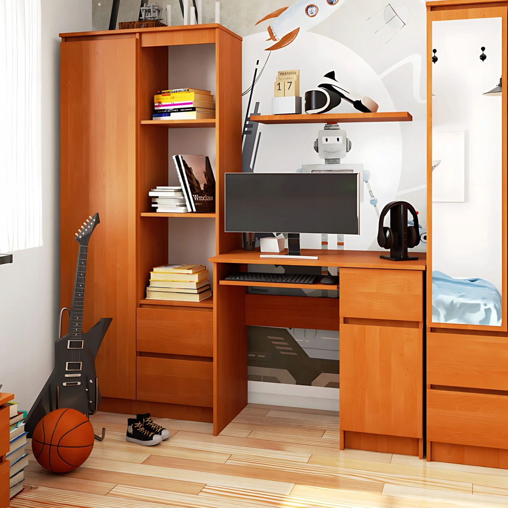 ✔️Wyposażone w pojemną szufladę (dł. 40 x szer. 24,2 cm) oraz szafkę (wys. 57 x szer. 32,8cm) rozmieszczone po lwej stronie oraz wysuwaną półkę na klawiaturę, pod blatem, oferują mnóstwo miejsca do przechowywania, co pozwala utrzymać uporządkowaną przestrzeń roboczą. Szuflady poruszają się na metalowych prowadnicach z rolkami, zapewniając płynne i bezproblemowe użytkowanie.
