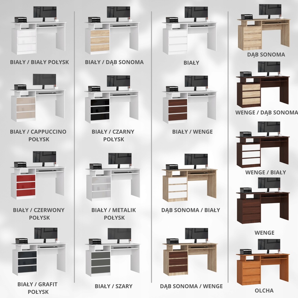 ✔️Wyposażone w 3 pojemne szuflady (dł. 45 x szer. 41 cm), rozmieszczone po lewej stronie, oferuje mnóstwo miejsca do przechowywania, co pozwala utrzymać uporządkowaną przestrzeń roboczą. Szuflady poruszają się na metalowych prowadnicach z rolkami, zapewniając płynne i bezproblemowe użytkowanie.