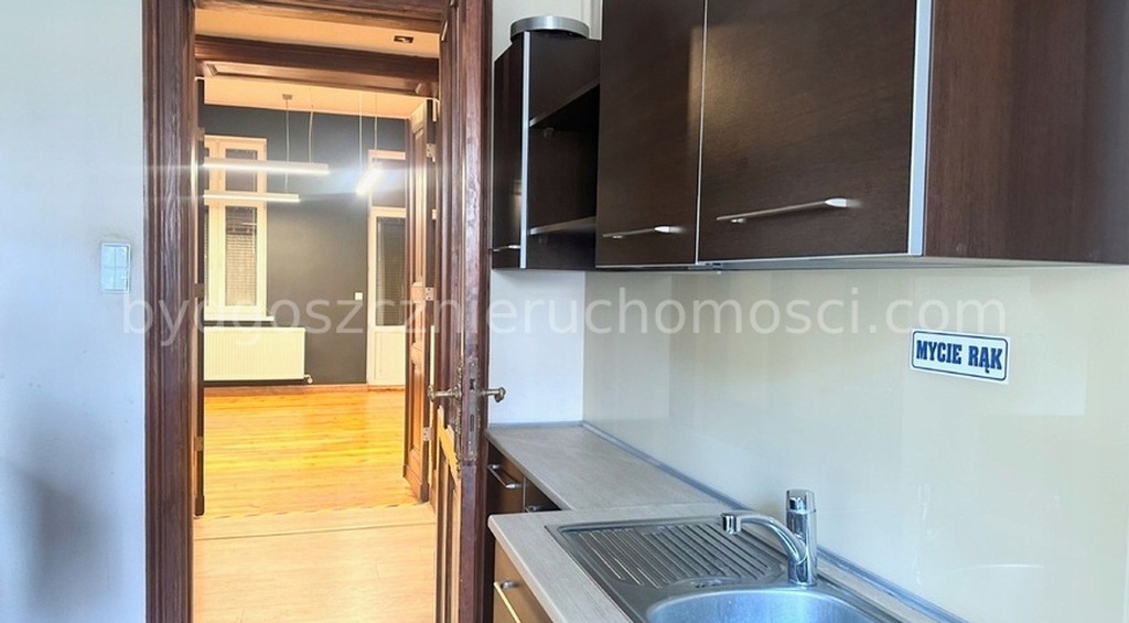 Do wynajęcia elegancki, przestronny lokal biurowy o powierzchni 108 m2, usytuowany na 1 piętrze w kamienicy znajdującej się przy jednej z głównych ulic w Centrum Bydgoszczy.