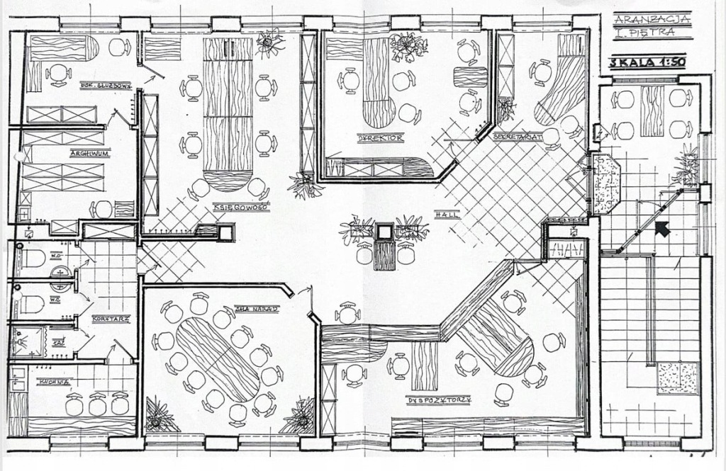 - biuro nr 1 (dyrektor, powierzchnia około 22 m2),