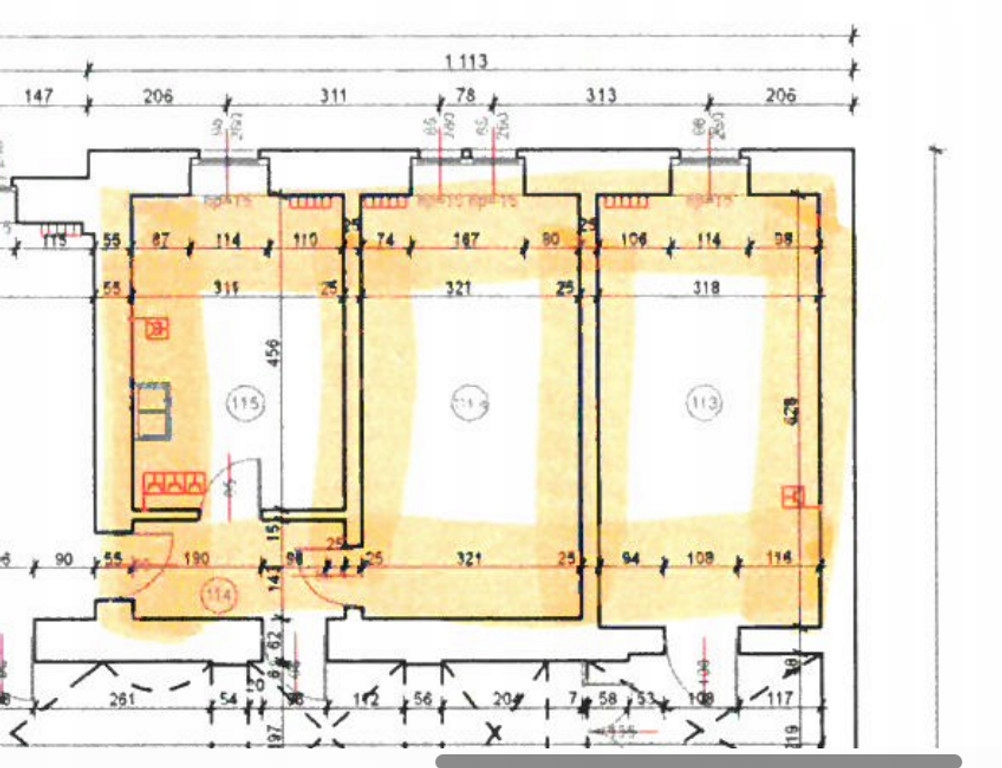 Powierzchnia do najmu to łącznie 53,86 m2, składająca się z 3 lokali.