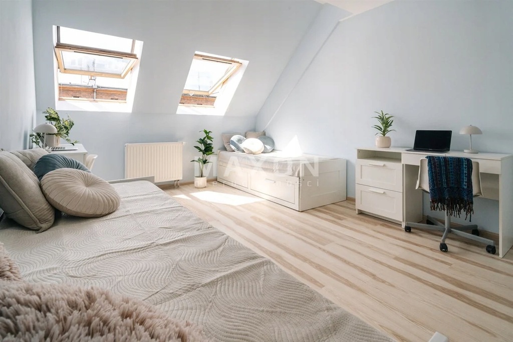 Posiada tylko okna połaciowe w pokojach i świetlik dachowy w kuchni.