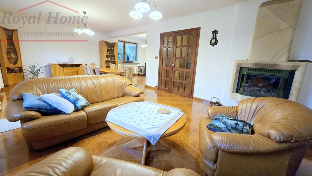 Wybudowany został z bardzo dobrej jakości materiałów wykończeniowych, ściany zewnętrzne domu są dwuwarstwowe wykonane z pustaka ceramicznego max, oraz pełnej cegły, dach dwuspadowy pokryty blachodachówką, okna PCV w okleinie drewnopodobnej złoty dąb, drzwi zewnętrzne antywłamaniowe, drzwi wewnętrzne drewniane, na podłogach panele i kafle, na ścianach tynk cementowy, schody wewnętrzne drewniane, instalacja elektryczna miedziana. Dom ogrzewany jest nowoczesnym piecem na biomasę z zasobnikiem wody firmy Kostrzewa, oraz kominkiem wykonanym z piaskowca. W cenie domu pozostają meble kuchenne wraz ze sprzętem AGD, a pozostałe wyposażenie i umeblowanie do uzgodnienia. Rozkład pomieszczeń daje swobodę poruszania się w nim, a ustawny i funkcjonalny układ czyni go bardzo atrakcyjnym i wygodnym. Dom z dużym potencjałem i możliwościami aranżacji wnętrza, znajdujący się wśród domów jednorodzinnych z ładnie zagospodarowanym ogrodem.