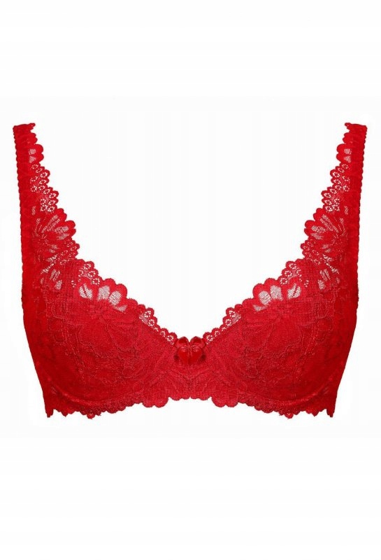 Biustonosz Carmela M-053/22 ● pięknie podkreśla dekolt, idealnie zbiera biust ● szerokie, ozdobne ramiączko ● miseczki usztywniane wykonane z finezyjnej koronki ● miseczki osadzone na koronkowym bawecie ● plecy gładkie z dzianiny elastycznej ● plecy wzmocnione fiszbiną pionową ● ramiączka regulowane, nieodpinane ● haftka dwurzędowa z trójstopniową regulacją ● pięknie prezentuje się na każdym biuście Skład: 66% poliamid, 18% bawełna, 10% poliuretan, 6% elastan
