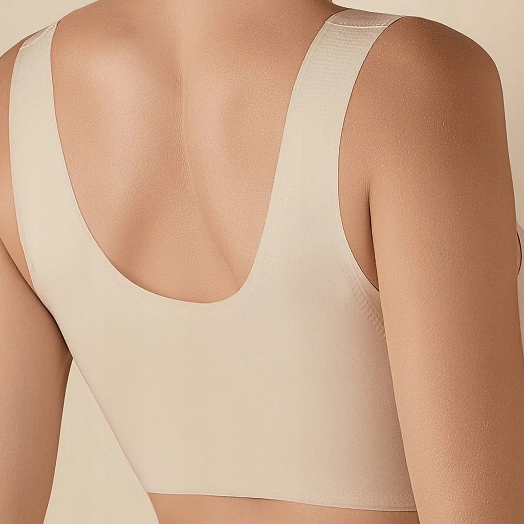 Biustonosz Damski Stanik Top Bez Fiszbin Miękki Bezszwowy Gładki Beż M