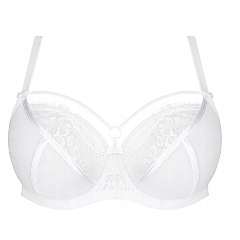 - konstrukcja soft (miękki)- dla kobiet ze średnim i dużym biustem- podwyższony mostek- ramiączka odsunięte do boku – biust zebrany mocno do środka; nieodpinane, regulowane- efekt bardzo mocnego uniesienia biustu- 3-częściowy podział misek- 3 szerokości ramiączka (14, 18, 22)- haftka z trzy stopniową regulacją obwodu: 2 rzędowa- ramiączko 14; 3- rzędowa – ramiączko 18, 22- dolne miski: 2 warstwy tiulu stabilnego- górne miski: stabilna koronka podszyta tiulem stabilnym, górna krawędź wykończona taśmą elastyczną- szwy przykryte gładką satynową taśmą- na dekolcie kółeczko z paseczkami bez regulacji - pas obwodu: wyprofilowany mostek z tiulu stabilnego i stabilnej koronki- transparentna lycra o strukturze siatki zapewniająca bardzo dobre podtrzymanie- na bokach płaskie fiszbiny, aby biustonosz idealnie przylegał do ciała.- metalowe kółka i regulatory w kolorze ramiączka (nie zawierają niklu)Skład: 90% poliamid, 7% elastan, 3% poliesterDo kompletu polecamy figi K497 oraz brazyliany K498