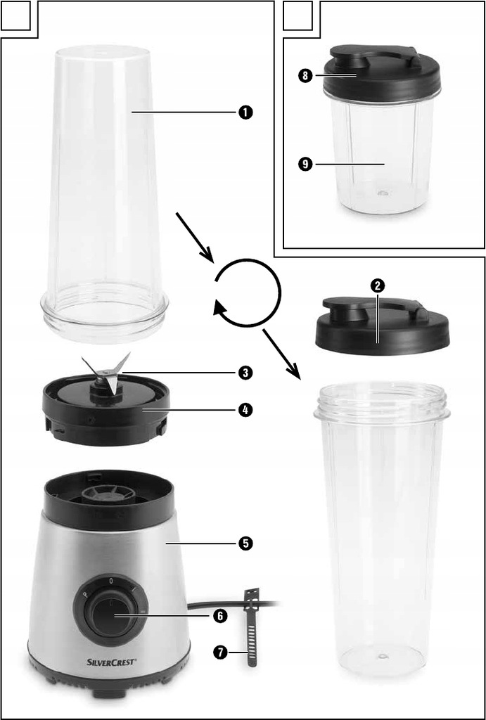 SilverCrest SSME 250 A2 to praktyczny blender, w którym przygotujesz sok bezpośrednio w kubku do picia 0,5l lub 0,8l. To bardzo proste: napełniasz filiżankę składnikami, które lubisz i naciskasz przycisk, aby je zmielić. Ostrza ze stali nierdzewnej zapewniają równomierne mieszanie, a dzięki przezroczystej miseczce można łatwo sprawdzić, kiedy została osiągnięta pożądana struktura. Błonnik i inne zdrowe substancje zawarte w owocach i warzywach są konserwowane, dzięki czemu z SilverCrest SSME 250 A2 możesz szybko cieszyć się smacznym, pożywnym smoothie. Oczywiście blendera można również używać do przygotowywania sosów, guacamole i nie tylko.