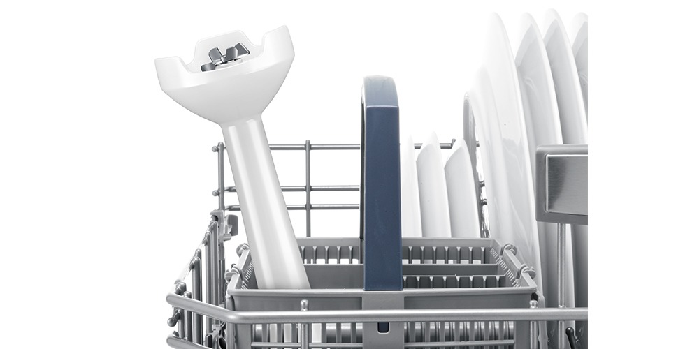 Przemyślana w każdym detalu, innowacyjna konstrukcja wewnętrznej części stopy końcowki sprawia, że przetwarzane produkty są idealnie zagarniane do wewnątrz i poddawane lepszemu i szybszemu rozdrabnianiu. Wyjątkowe tempo i sprawność miksowania jest zasługą imponujących właściwości tnących poczwórnego ostrza oraz doskonałego ukształtowania stopy, które zapobiega jej zasysaniu do dna naczynia.