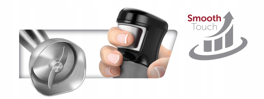 Funkcja Smooth Touch w blenderze ręcznym MBL-29/C pozwala płynnie regulować prędkość przy użyciu jednej ręki. Dociśnij przycisk łagodniej bądź mocniej, a urządzenie samoczynnie dostosuje prędkość do Twoich oczekiwań.