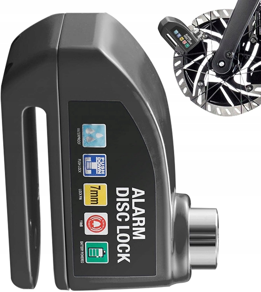 - Blokada tarczy hamulcowej z wbudowanym alarmem rowerowym.
