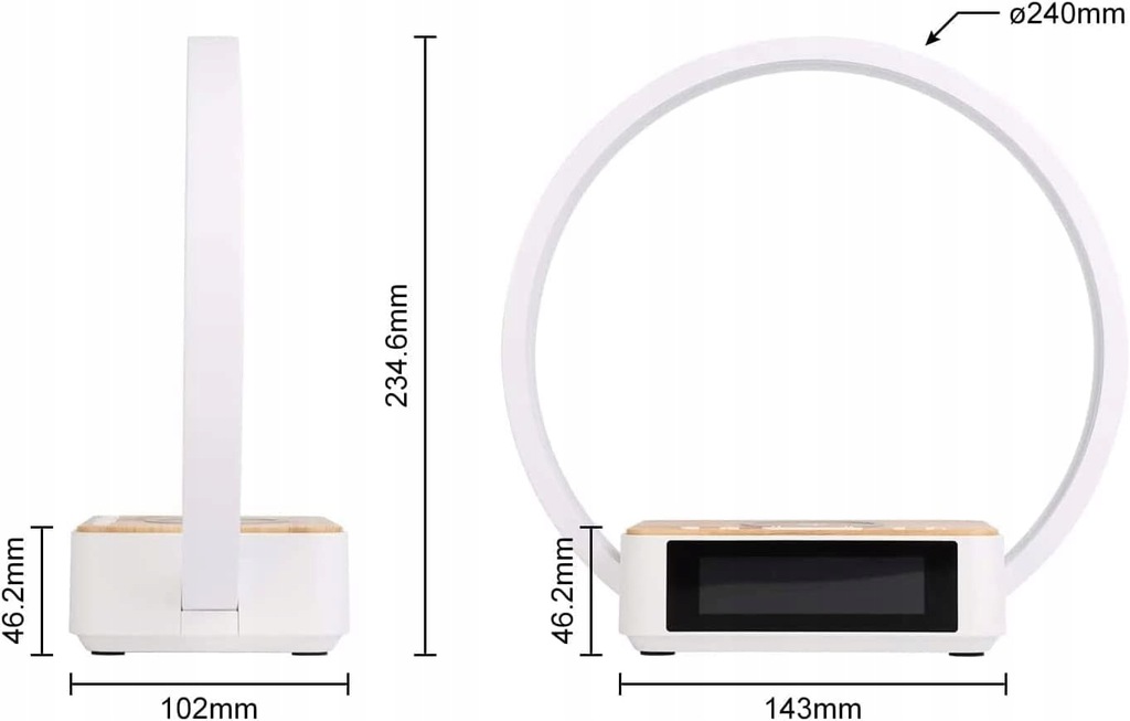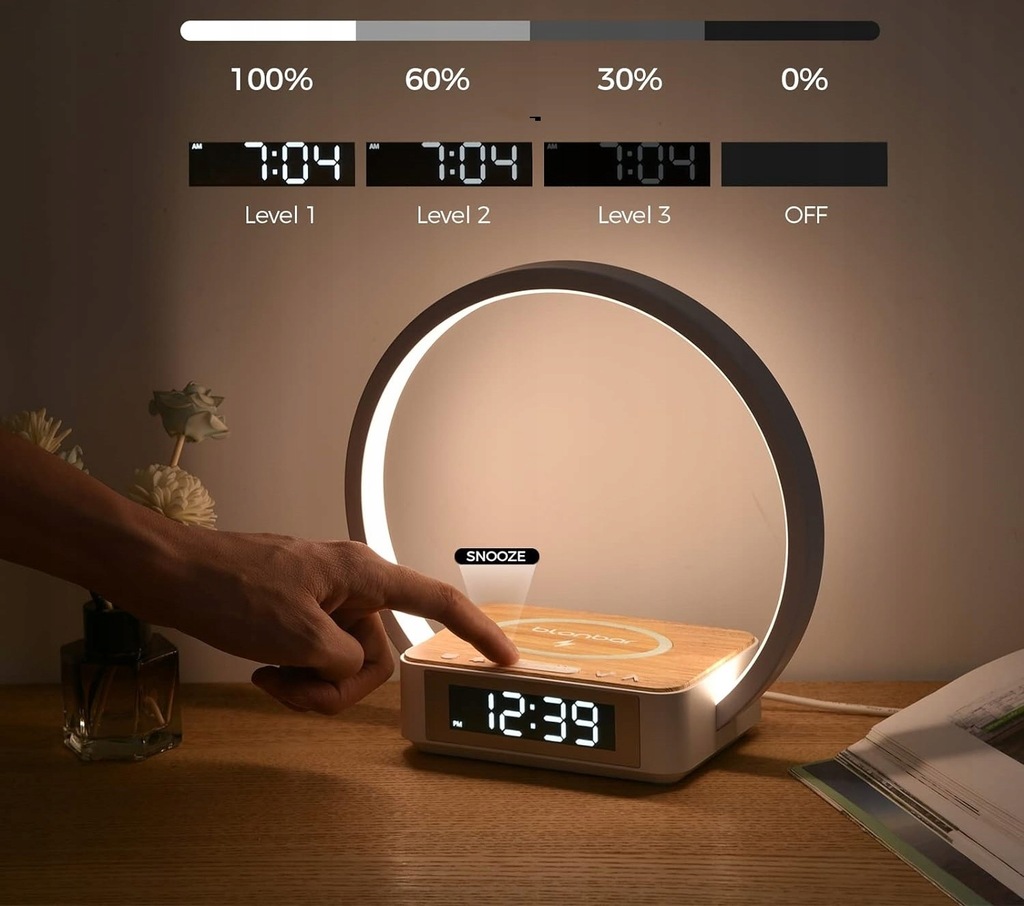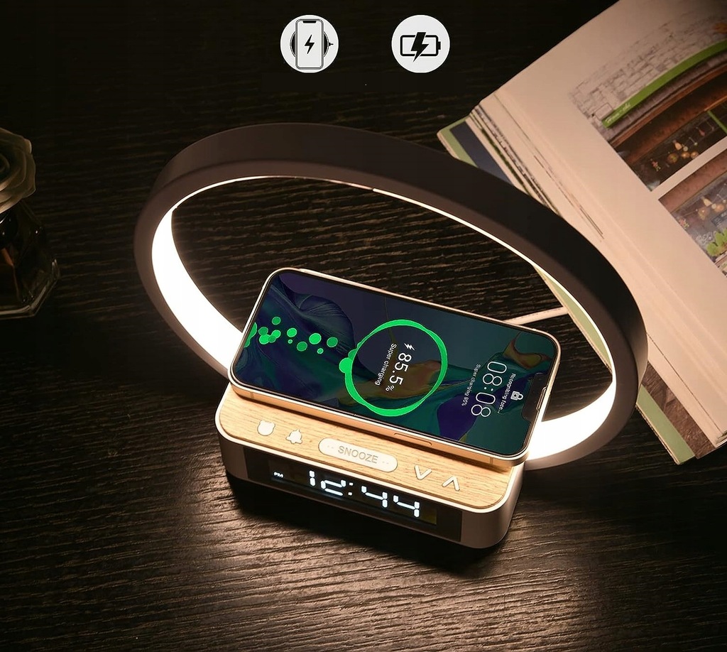 Blonbar Lampka nocna LED Budzik Qi bezprzewodowa ładowarka 10 W