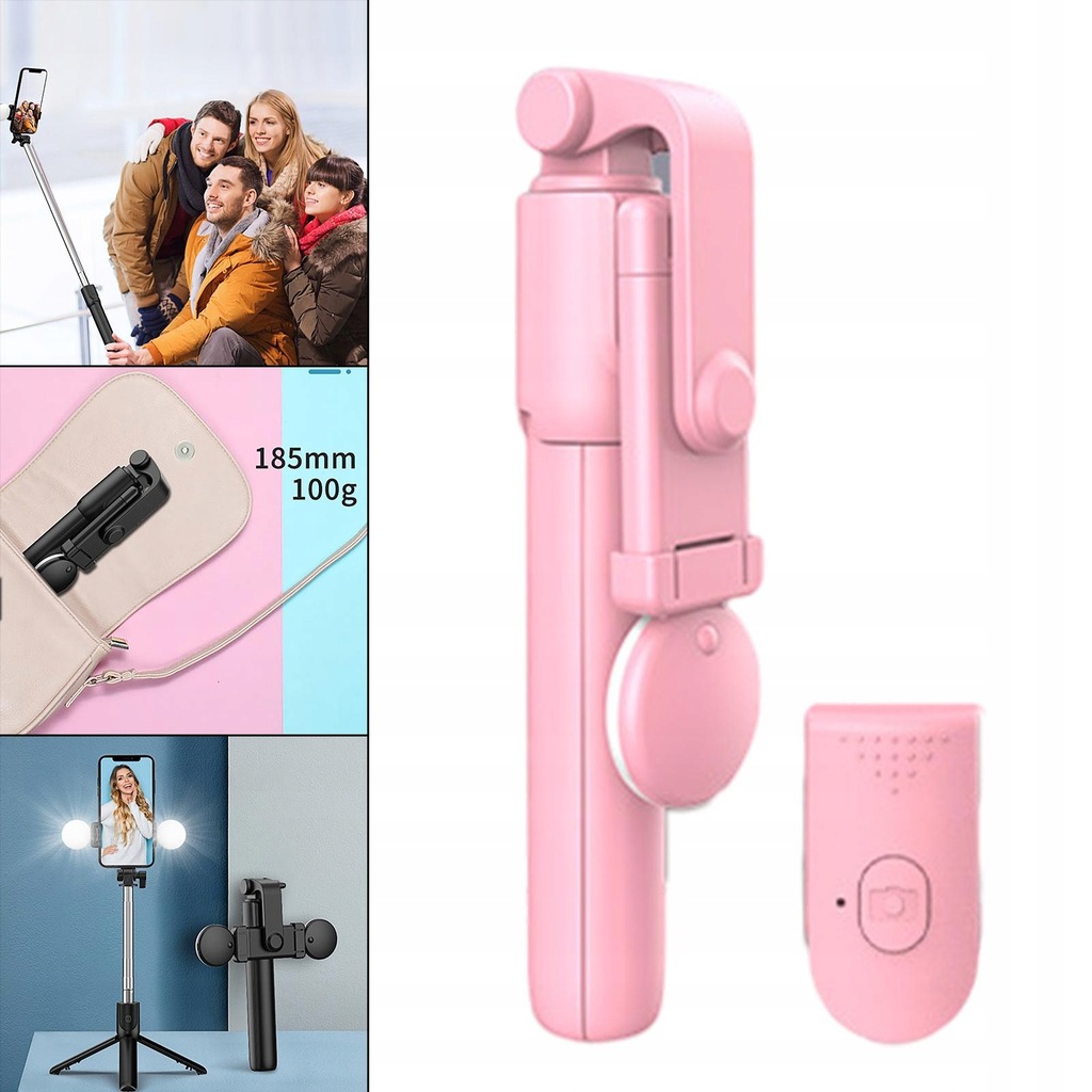 Selfie Stick with LED Light 360 Rotation Lightweight Vlogs Stabilizer Pink