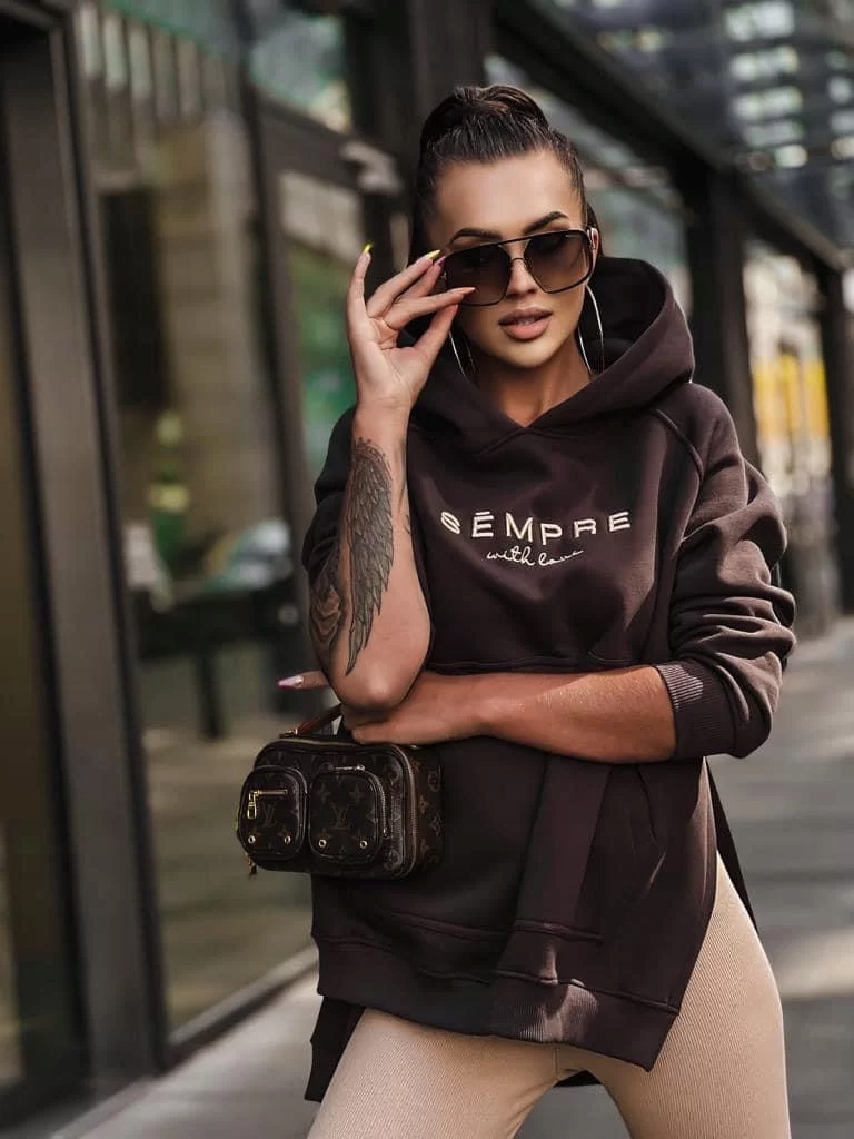 Bluza z rozcięciem na bokach stworzy idealne dopełnienie stylizacji. Ocieplany materiał. Optycznie wyszczupla sylwetkę. Swietnie się sprawdzi do obcisłych spodni, leginsów. Polski producent. Bluza dostępna w różnych wersjach kolorystycznych.
